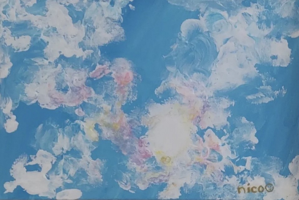 nicoさんは今年開催された当会企画展「明日はシンジダイ」(アルパーク東棟)に絵画作品を初出展。《彩雲》(2025年や《コスモス》(2025年)など、彼女にしか表現をすることのできない作品たちは鑑賞者に静かに語りかけ、展示室を柔らかい雰囲気へと昇華させました。